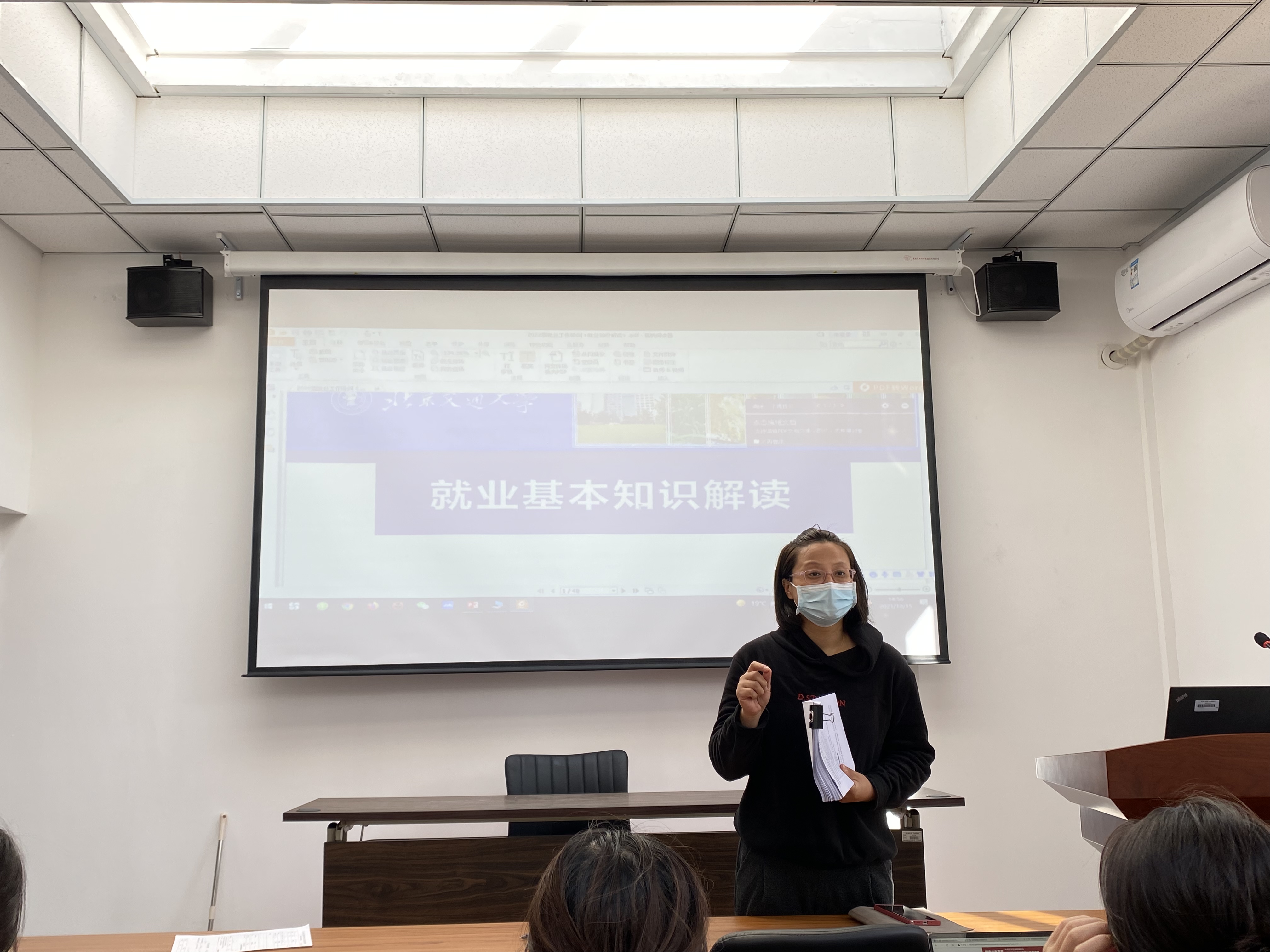 研究生辅导员刘慧敏老师对就业过程中涉及的基本知识进行了详细的解读,同时辅导毕业生现场填写推荐表等就业基本材料。