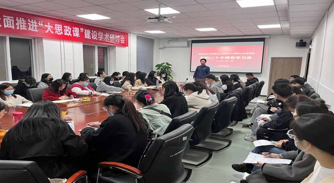 各个学生党支部也积极开展了学习党的二十大精神相关活动,进行了热烈的讨论和交流。总书记在报告的最后部分专门谈到“青年强,则国家强”,体现了党对青年的殷切期望和重托。大家纷纷表示作为哲学社会科学方向的学生,要自觉地用党的科学理论武装头脑,坚定不移听党话、跟党走,成为新时代好青年。