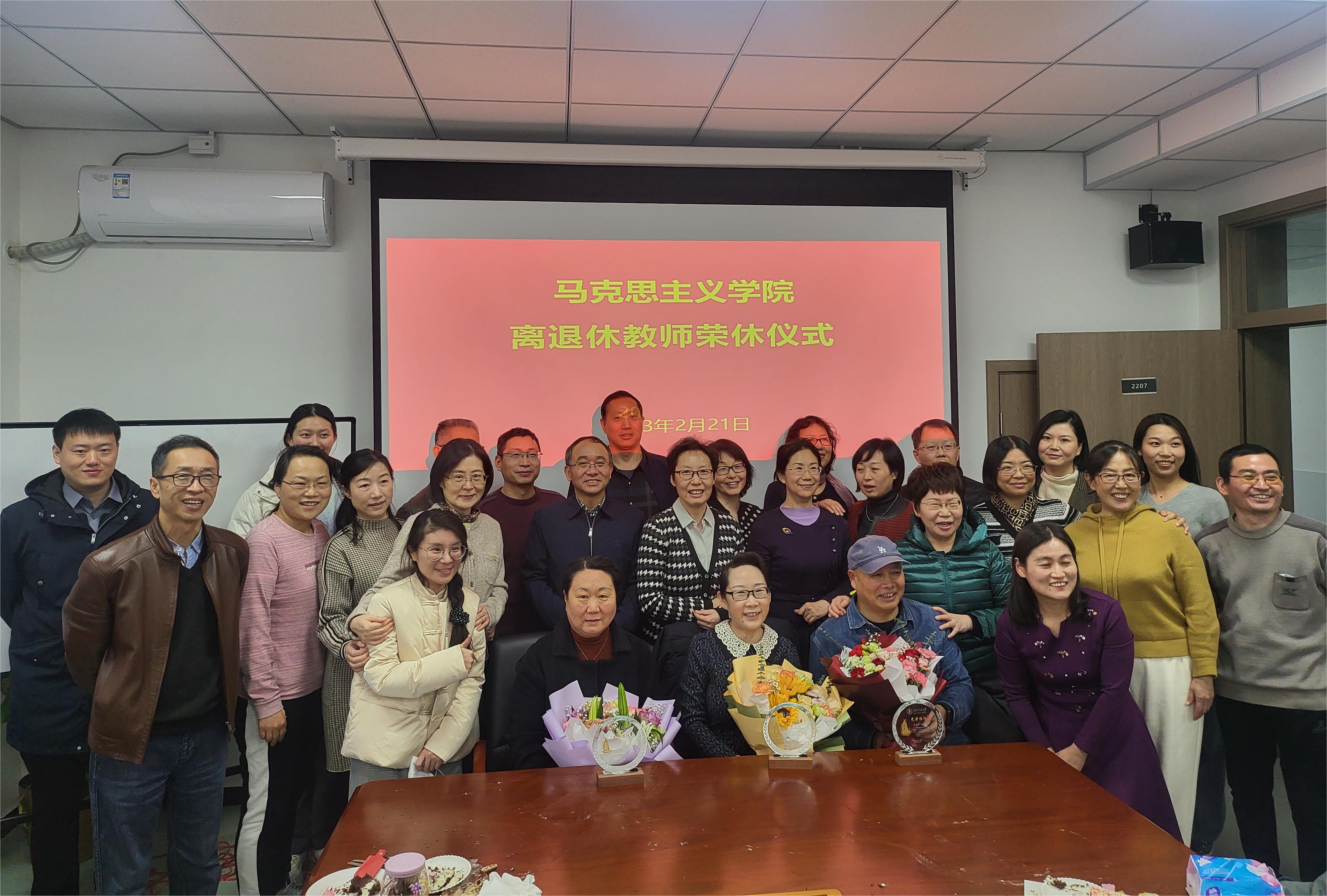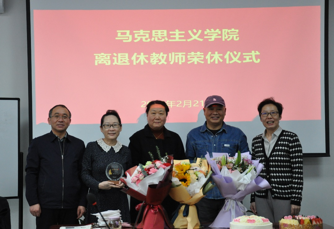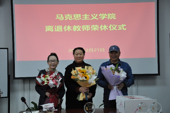 荣休仪式的最后,党委书记孙冬梅和院长高正礼为三位退休老师送上鲜花和礼物,祝福他们的退休生活丰富多彩,幸福美满。在洋溢的欢声笑语中,本次活动落下了帷幕。