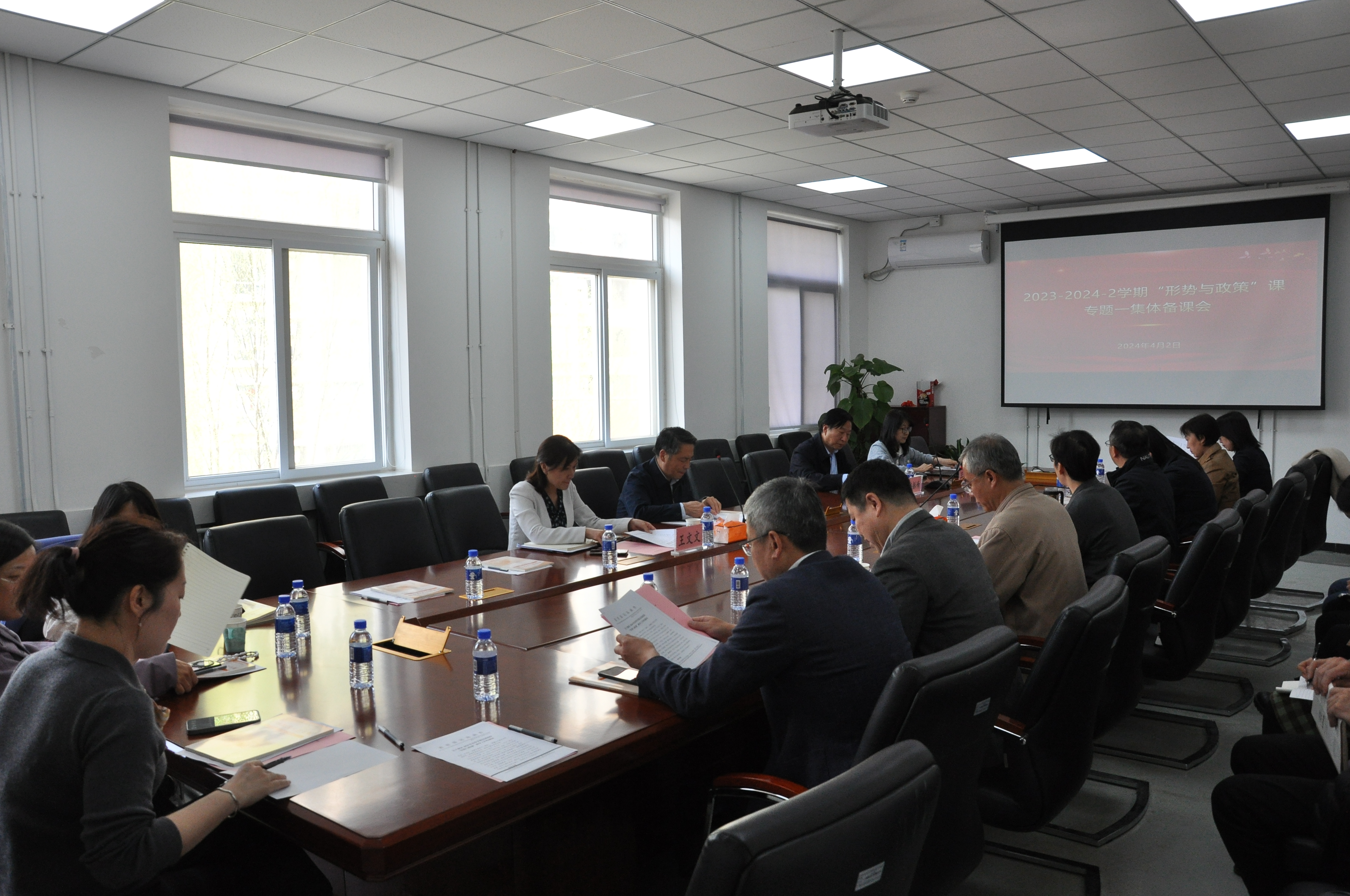 为深入学习贯彻习近平新时代中国特色社会主义思想,办好新时代大学生“形势与政策”课,不断提升我校“形势与政策”课的思想性、理论性、亲和力和针对性,帮助学生正确认识新时代新征程国内外形势,Beat365中文官方网站近期陆续开展四个专题的“形势与政策”课集体备课工作。党委书记王稼琼,校长、党委副书记余祖俊,党委副书记、纪委书记王文文,党委常委、副校长高艳,党委常委、宣传部部长兼统战部部长蓝晓霞及各专题组授课教师参加集体备课会。